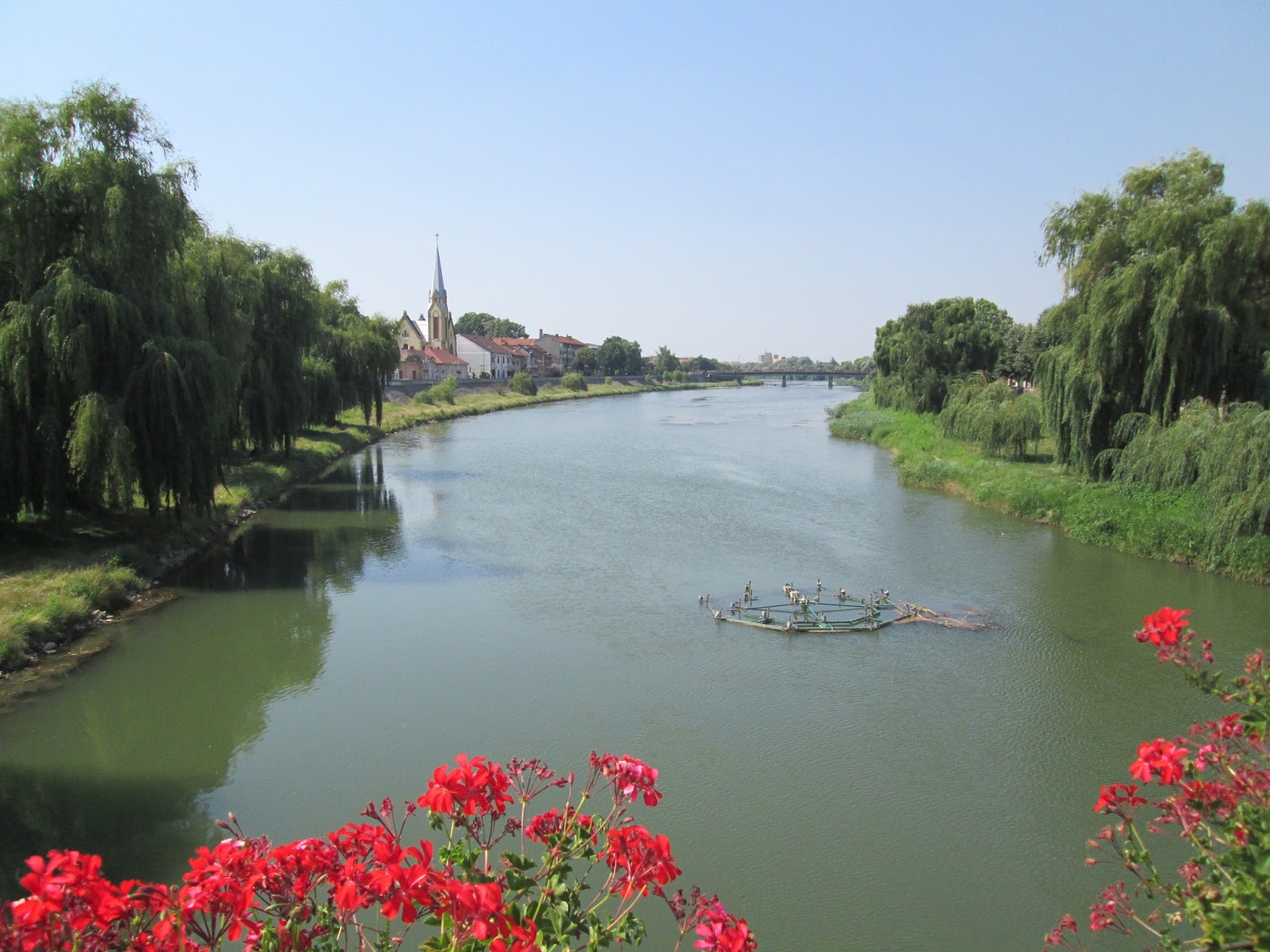 Here is one of the main areas in Lugoj. They have closed the street to cars and made it into a nice walkway. At the end of this walkway there is a bridge. It is called the Iron Bridge and is over 100 years old. It crosses over the Timis River which divides the town of Lugoj into two parts. In the old days the side I am standing on was the German side, while across the river was the Romanian side. This part of Romania has a heavy German tradition as the Austrian-Hungarian Empire came this far out.